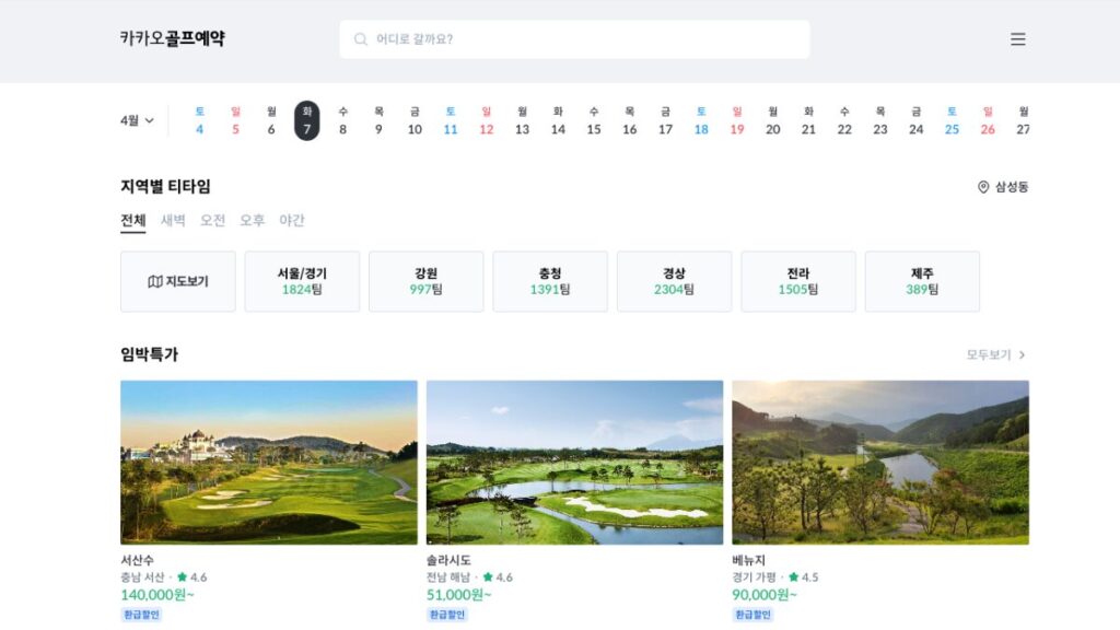 - 압도적인 코스 수(약 1,900코스 이상). 카카오골프에 없는 코스도 예약 가능