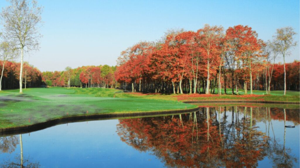 巧みに配置されたマウンドやバンカー、そして9番・18番ホールにまたがる広大な池がプレッシャーをかけ、ゴルファーの挑戦意欲を大いに刺激します。