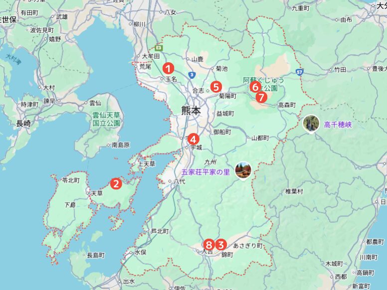 車でのアクセス九州自動車道【熊本】 30km以内 (50分)