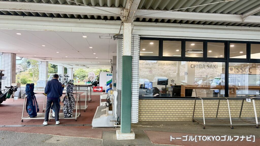 到着してすぐにクラブを置くところがあるのでセルフで下ろし、その後駐車場に車を停める流れです。