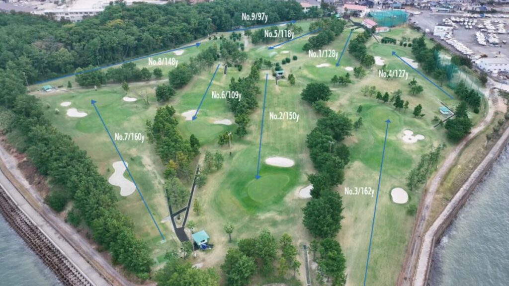 9ホール、すべてパー3の本格ショートコースで、バンカーやグリーンの管理状態は“本コース並み”と高評価です。